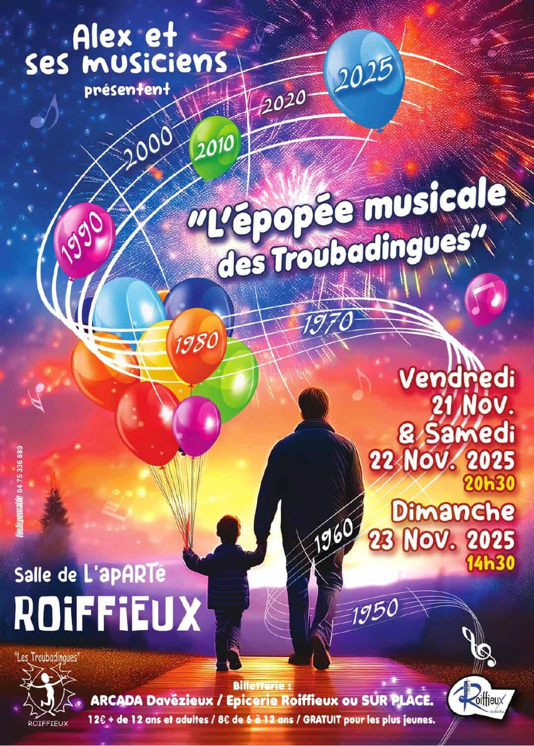 Alex et ses musiciens vous convient à l'épopée musicale des Troubadingues, vendredi 21 novembre et samedi 22 novembre à 20 h 30 à L'apARTé et dimanche 23 novembre à 14 h 30 à L'apARTé.